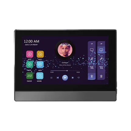 تاچ پنل مدل 7 اینچ علاوه بر اینکه تمام قابلیت های مدل بالا رو به شما ارائه میدهد مجهز به آمپلی فایر و کنترل هوشمند موسیقی نیز می باشد و دارای 8 خروجی برای باندهای موسیقی می باشد.
