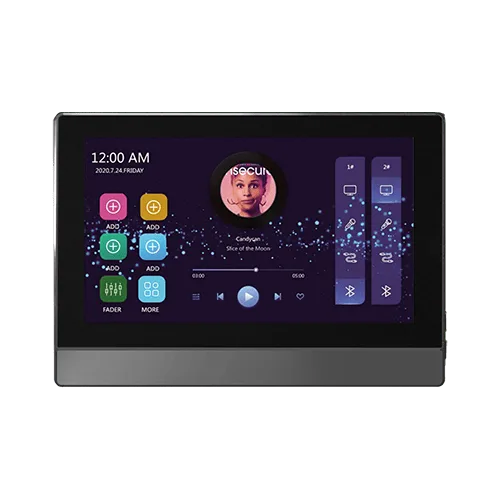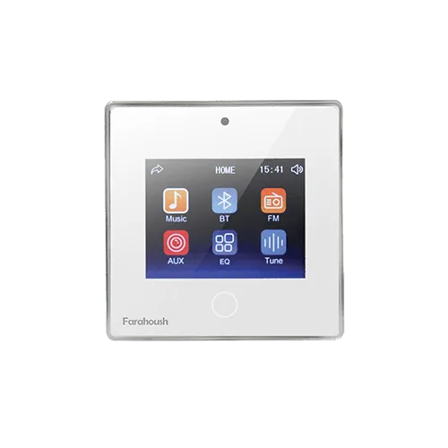 تاچ پنل و آمپلی فایر 7 اینچ که علاوه بر مدیریت یکپارچه کلیه سیستم های اشاره شده در بالا یک سیستم صوت مرکزی با 8 خروجی صوت در دو زون مجزا نیز می باشد.
